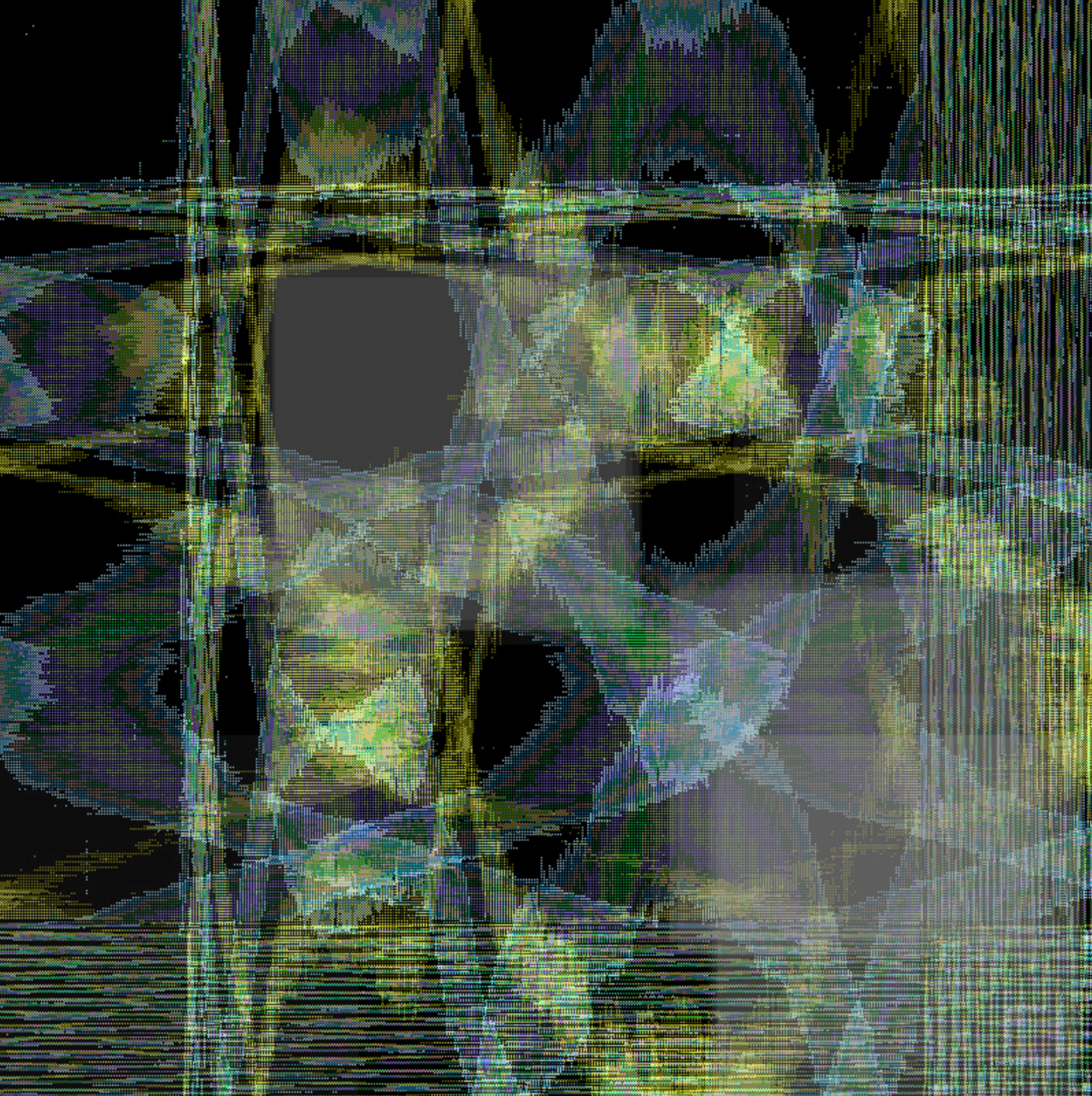 '우븐 사운드(Woven Sounds)' — 색소폰, 브러시, 그리고 스웜 알고리즘이 함께한 텍스타일 사운드 녹음, 2006년. 팀 블랙웰, 자니스 제퍼리스 (HUMAN PERFORMERS). PHOTO: TIM BLACKWELL: ‘사운드를 짜다 ‘. 실이 아니라 소리로 직조된 풍경. 우븐 사운드 알고리즘에서는 각 소리의 흐름이 선형의 실(실타래)로 변환되며, 샘플들은 픽셀 값으로 변환된다. 직조된 이미지에는 색소폰 소리의 곡선 패턴과 브러시 소리의 직선 패턴이 겹쳐져 나타난다. 우리는 이 실험적인 작업에서, 소리와 섬유의 새로운 만남을 목격하게 된다.