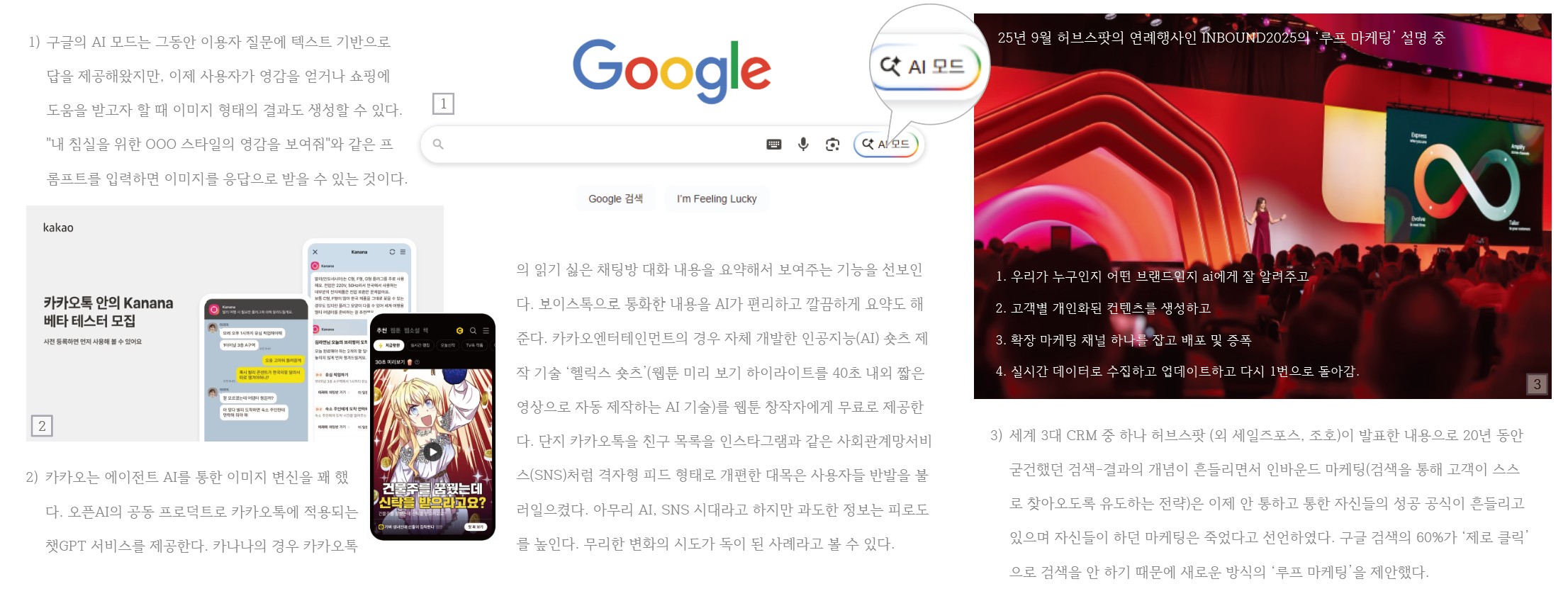현재 대한민국은 기업의 AI 도입에서 가장 앞선 나라 중 하나다. (OECD 국가 37개국 중 10인 이상의 기업을 대상으로 AI 도입률 세계 1위 국가) 10인 이상 기업을 기준으로 보면 AI를 실제 업무에 붙여 쓰는 속도가 세계 최상위권이고, 챗 GPT 유료 사용자 수가 단순히 숫자로만 세계 2위를 기록한 사실은 대한민국이 AI 기술 수용성 면에서도 세계적 수준이라는 평가에 이르른다. 네이버의 ‘AI 브리핑’처럼 검색과 뉴스에 기본으로 붙는 기능이 늘고, 2025년 11월에는 카카오톡에도 챗GPT 계열 기능이 사실상 들어오면서, 한국의 일상은 이미 AI와 함께 살아가고 있다. 이 변화의 핵심은 “자동화로 더 빨리, 더 많이”가 아니다. 이제는 “일의 단위를 어떻게 다시 설계할 것인가”로 무게가 옮겨가고 있다. 예전엔 사람이 하던 일을 기계가 대신 빨리 처리하는 게 자동화의 목표였다면, 지금의 AI는 일 자체를 다시 나누고 묶어, 사람과 기계가 각자 잘하는 역할을 재배치한다. 자주 언급되는 ‘에이전트형 AI(Agentic AI)’는 질문에 답만 하는 도우미가 아니라, 스스로 계획을 세우고 여러 단계를 연속해서 처리하는 “가상의 동료”를 뜻한다. 자료를 모으고, 요약하고, 초안을 만들고, 공유하고, 피드백을 받아 반영하는 것까지 한 번에 이어서 맡길 수 있다. 맥킨지의 2025 테크 트렌드에서도 이 흐름을 큰 축으로 다루며, 에이전트형 AI와 이를 뒷받침하는 특화 반도체를 핵심 키워드로 올려놓은 이유가 여기에 있다. 현장에서 이미 파도가 크게 일고 있기 때문이다. AI는 사람으로부터 “저부가 공정”을 떠맡으며. 반복, 복사, 정리 같은 일은 에이전트 몫이 되며 “고부가 영역”이 열린다. 문제를 어디서부터 정의할지, 어떤 기준으로 판단할지, 누구와 어떻게 협력해 긴장을 조율할지 같은 부분이다. 즉, ‘정답을 빠르게 내는 힘’보다 ‘무엇을 물을지 정하는 감각’, ‘상황에 따라 맥락을 바꾸는 감각’, ‘속도를 맞추는 감각’이 더 중요해진다. 본문에서 AI를 자주 논하는 이유는 AI는 사람의 일을 빼앗는 기술이 아니라, 사람만이 할수 있는 사람이 잘하는 일로 돌아가게 하는 기술이기 때문이다. 기술이 효율을 가져갈수록 사람의 감각은 가치가 된다.