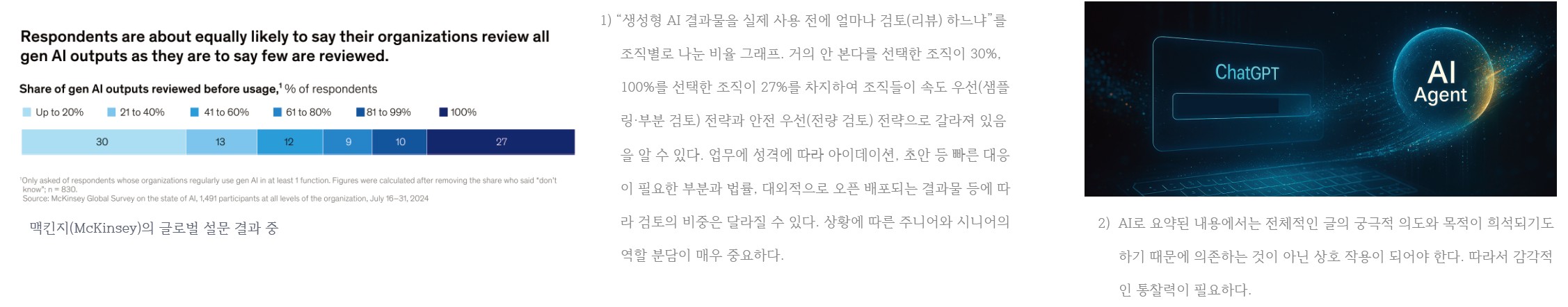 AI에 의한 역할의 재배치 : NEW 주니어: 속도를 만들고 의미를 압축하는 사람 / 시니어: 경계를 설계하고 최종 책임을 지는 사람